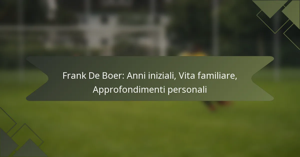 Frank De Boer, nato ad Amsterdam, è cresciuto in una famiglia che ha instillato una profonda passione per lo sport, influenzando significativamente le sue aspirazioni nel calcio. La sua vita familiare è stata fondamentale nel plasmare il suo carattere e i suoi valori, fornendo il supporto che ha alimentato la sua resilienza e il suo spirito competitivo durante il suo percorso professionale. De Boer sottolinea l’importanza di queste esperienze fondamentali nello sviluppo delle sue capacità di leadership e del suo senso morale.